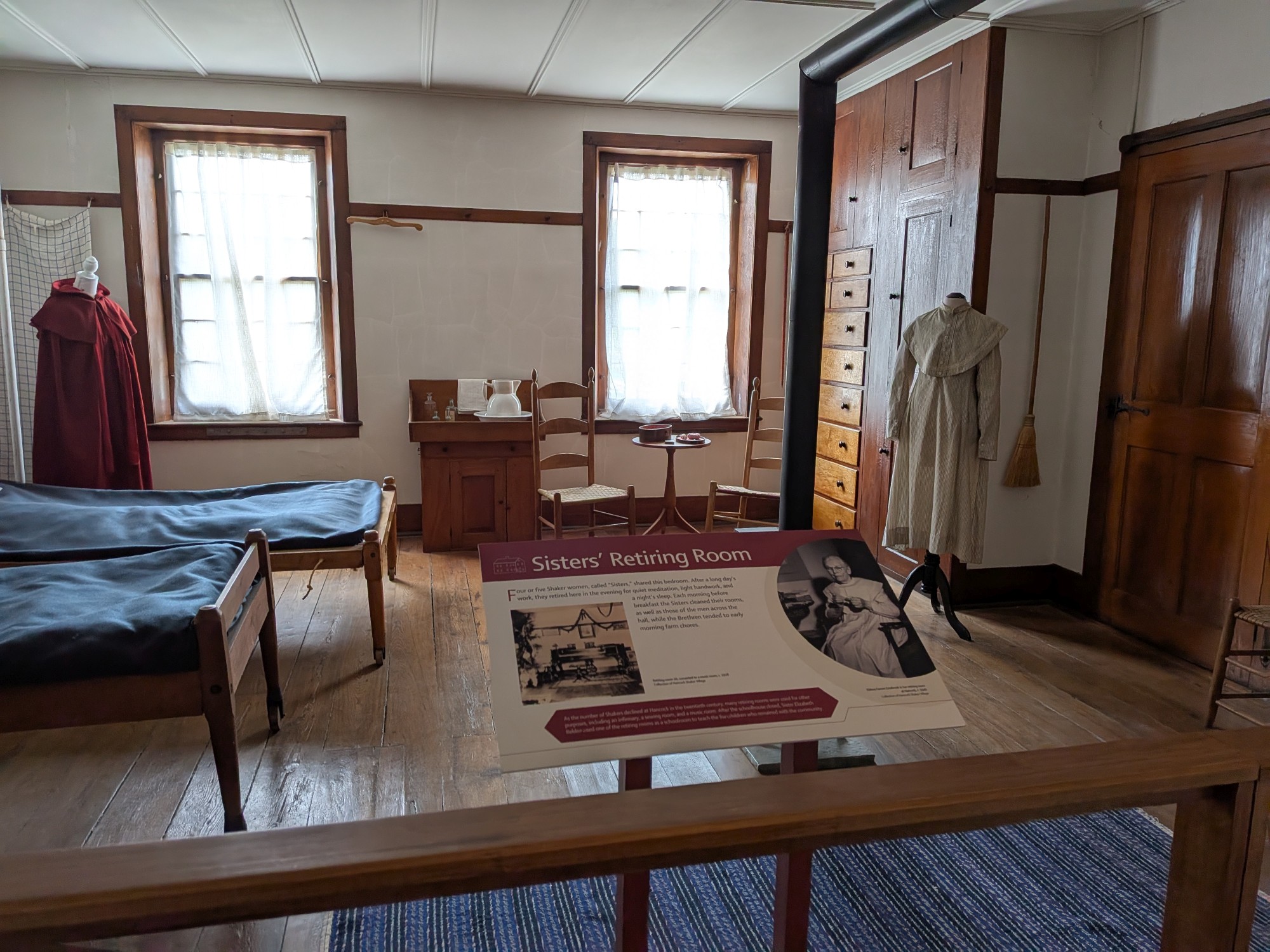 Walking through the round stone barn and the simple, orderly living spaces, we got a sense of the Shakers’ devotion to hard work, craftsmanship, and spiritual discipline. Their approach to community was radically different from the experimental, free-love philosophy of the Oneida group, yet both were rooted in the same search for a perfect society.