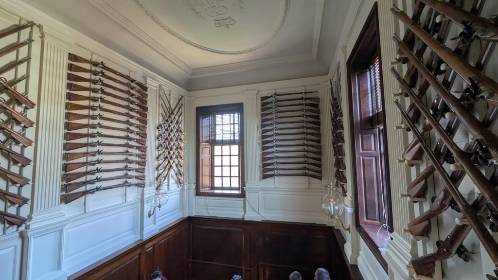 We also toured some of the most iconic buildings in the Historic Area. The Governor’s Mansion was an absolute showpiece — all polished wood, elegant staircases, and walls adorned with gleaming swords and muskets. The Courthouse and Capitol were equally impressive, each space humming with echoes of legal debates and fiery political arguments that helped shape our nation’s beginnings.